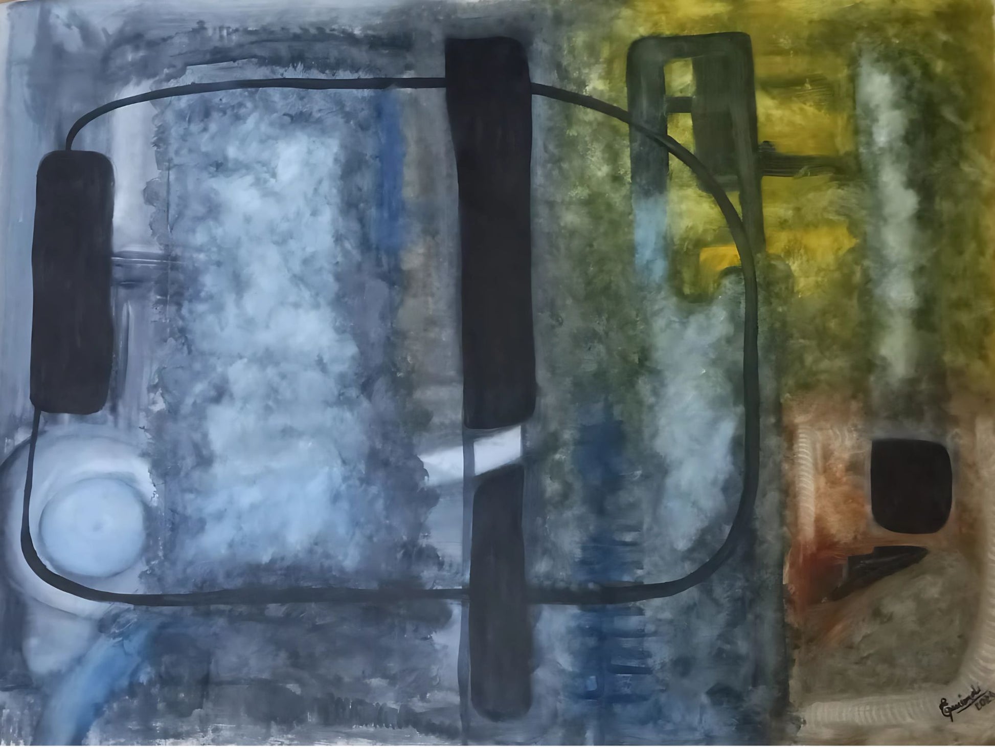 Há um equilíbrio preciso entre controle e espontaneidade: o rigor das formas contrasta com a liberdade dos campos cromáticos, resultando em uma obra silenciosamente poderosa. É uma pintura que não impõe uma narrativa, mas convida o observador a projetar suas próprias leituras — urbana, emocional ou até arquitetônica.